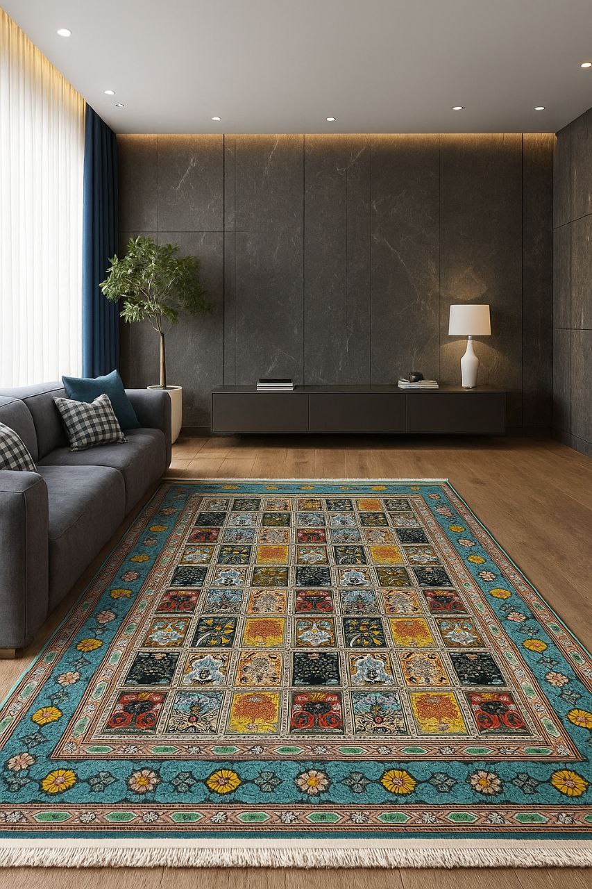 فرشینه لاکچری مدرن طرح فیروزهای رنگ خاص و جذاب مناسب انواع دیزاین مدرن و کلاسیک با پنج سال ضمانت شرکتی۲٬۹۹۰٬۰۰۰ تومان