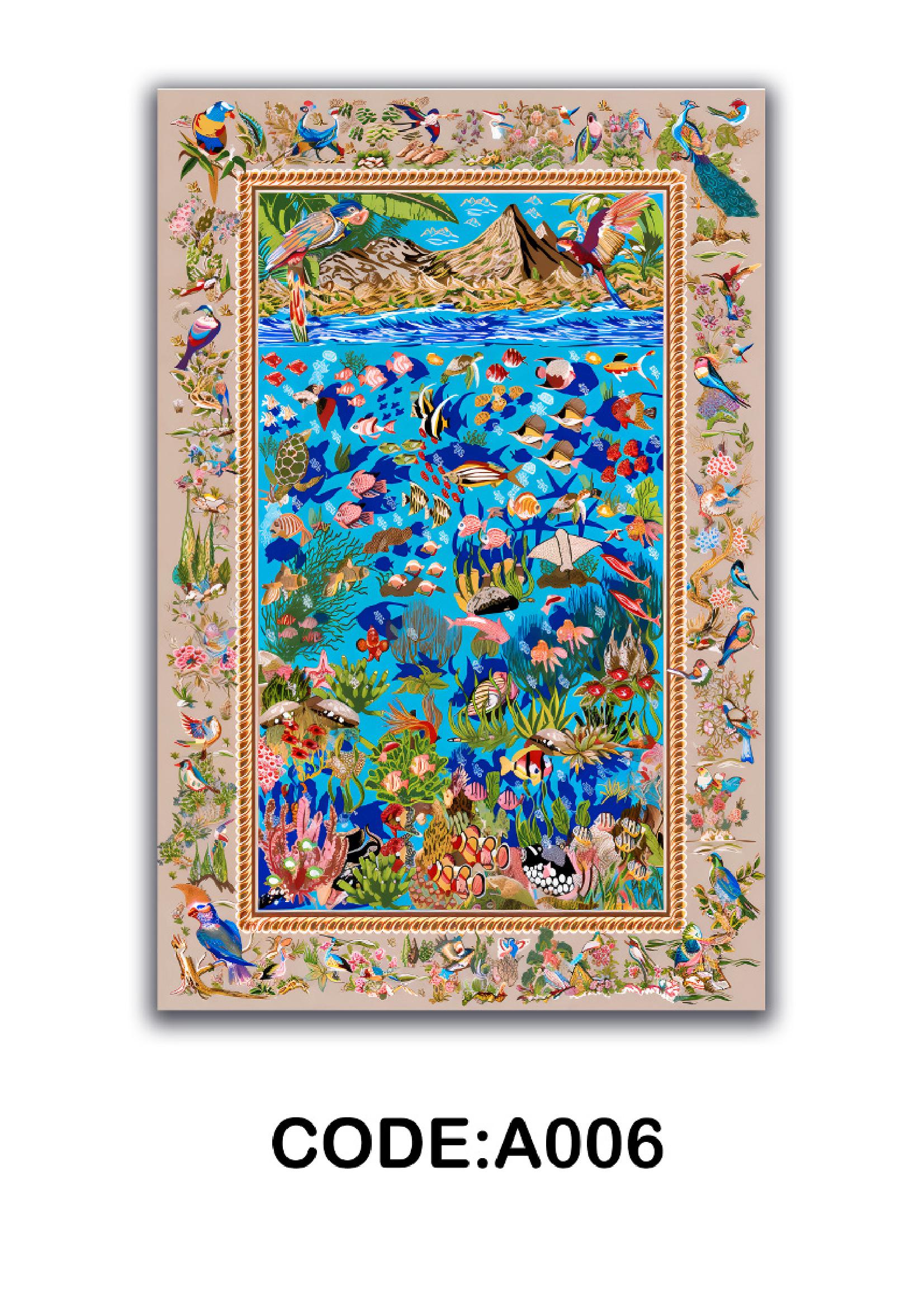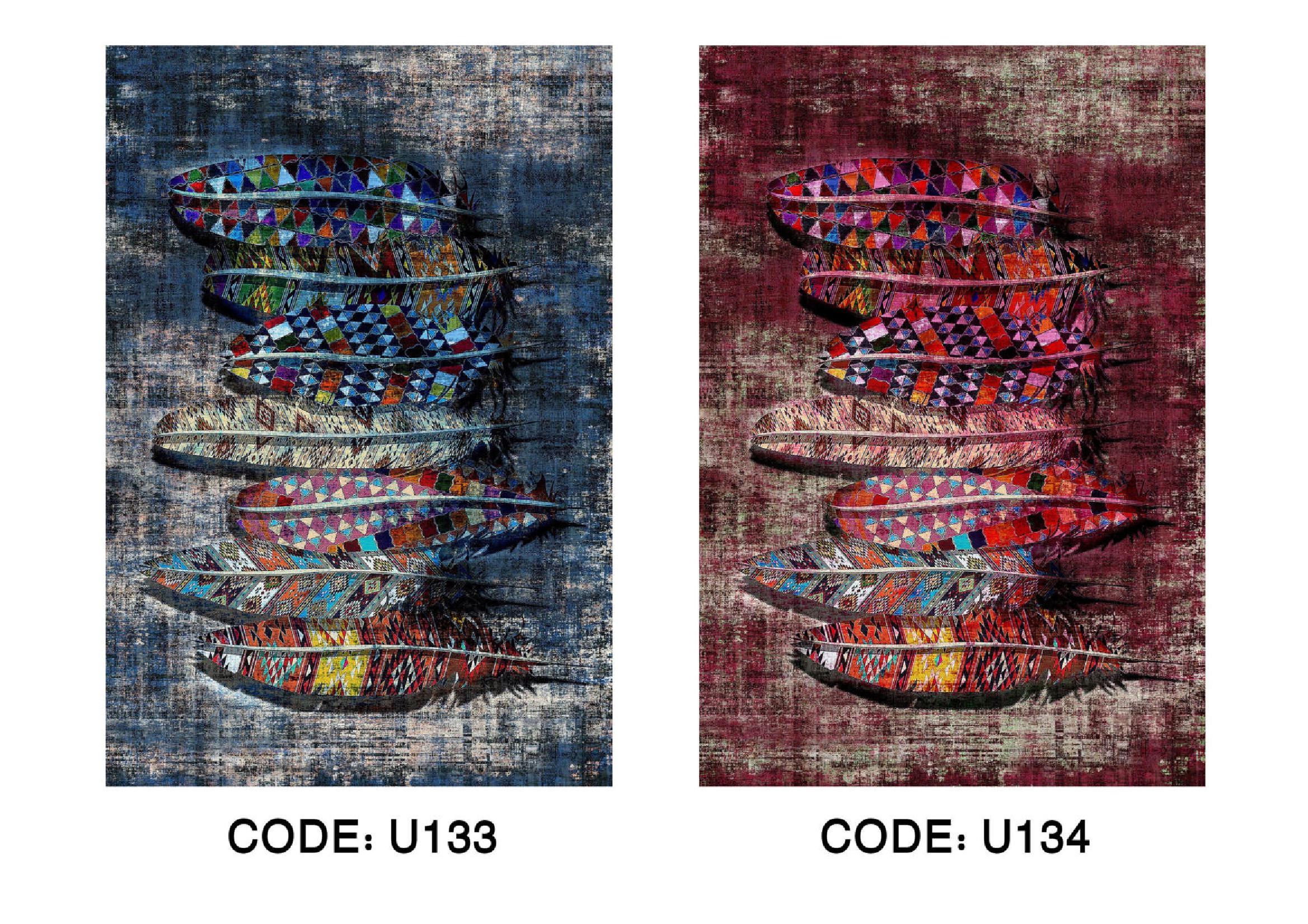 فرشینه مدرن طرح پرهای رنگی | فرش فانتزی کد U133 و U134 | طراحی خاص با رنگبندی آبی و زرشکی – LUXURY CARPET۳٬۰۶۰٬۰۰۰ تومان