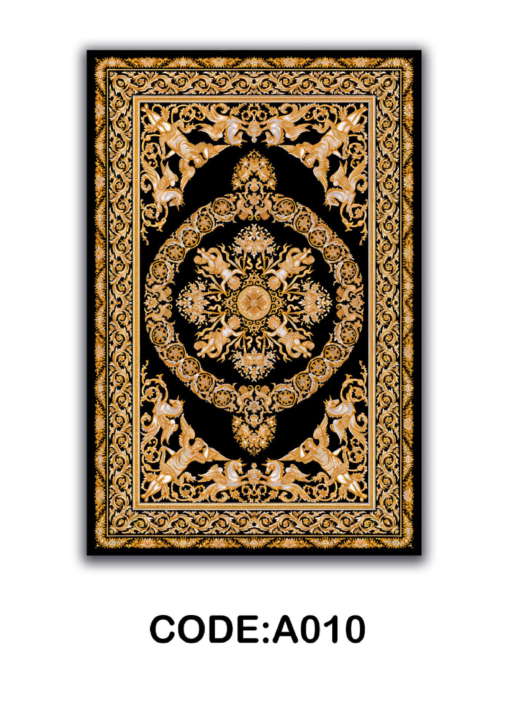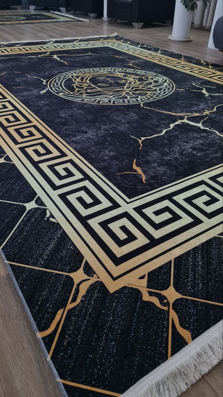 فرشینه مدرن مشکی طلایی طرح ورساچه – فرشینه لاکچری قابل شستشو با ضمانت ۳ ساله و رویه ضد حساسیت۲٬۹۹۰٬۰۰۰ تومان