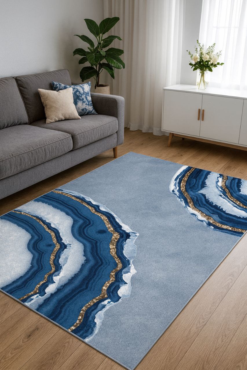 فرشینه مدرن طرح سنگ آبی طراحی لوکس برای دکوراسیون مینیمال مناسب برای سالن پذیرایی و نشیمنهای لوکس با رویه مخمل شانل و زیره ضد لغزش۲٬۹۹۰٬۰۰۰ تومان