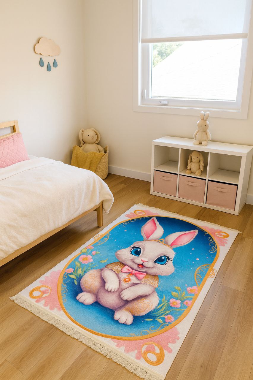فرشینه کودک طرح خرگوش (Rabbit) فرش اتاق خواب دختر و پسر با رویه ضد حساسیت و پنج سال ضمانت شرکتی۹۹۹٬۰۰۰ تومان
