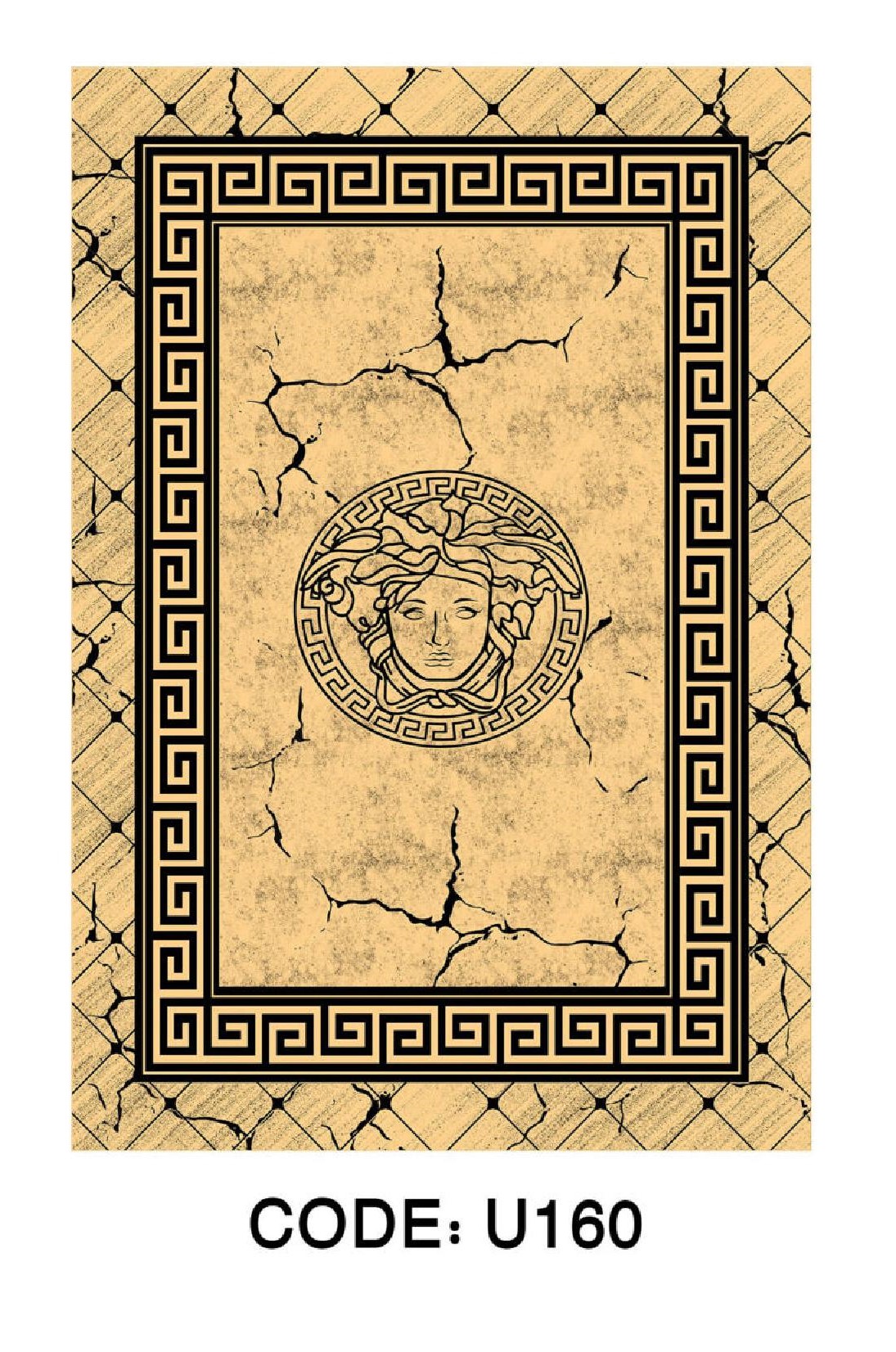 فرشینه طرح ورساچه طلایی کد U160 | فرش مدرن کرم طلایی با طرح یونانی لوکس و رویه شانل ترک و زسره ضد لغزش با ضمانت۲٬۱۹۹٬۰۰۰ تومان