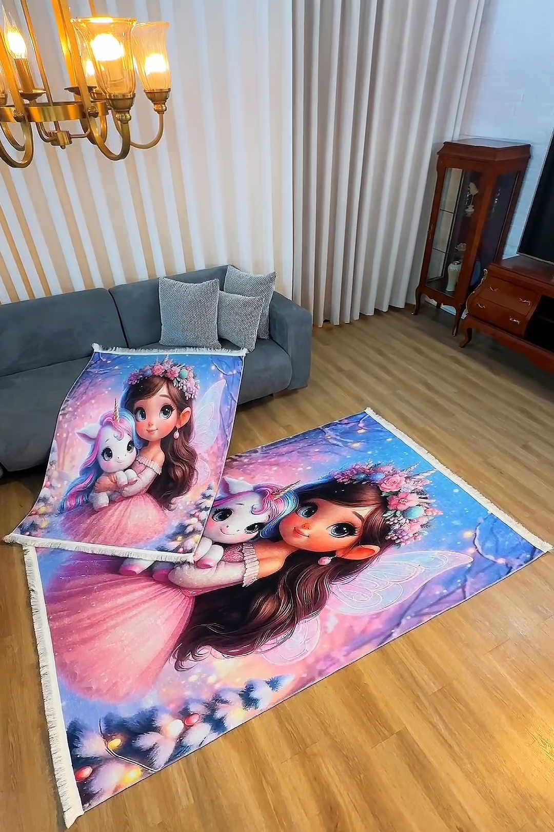 فرشینه فانتزی دخترانه با طرح پری و یونیکورن | فرش مدرن اتاق کودک کد U430۳٬۲۹۴٬۰۰۰ تومان
