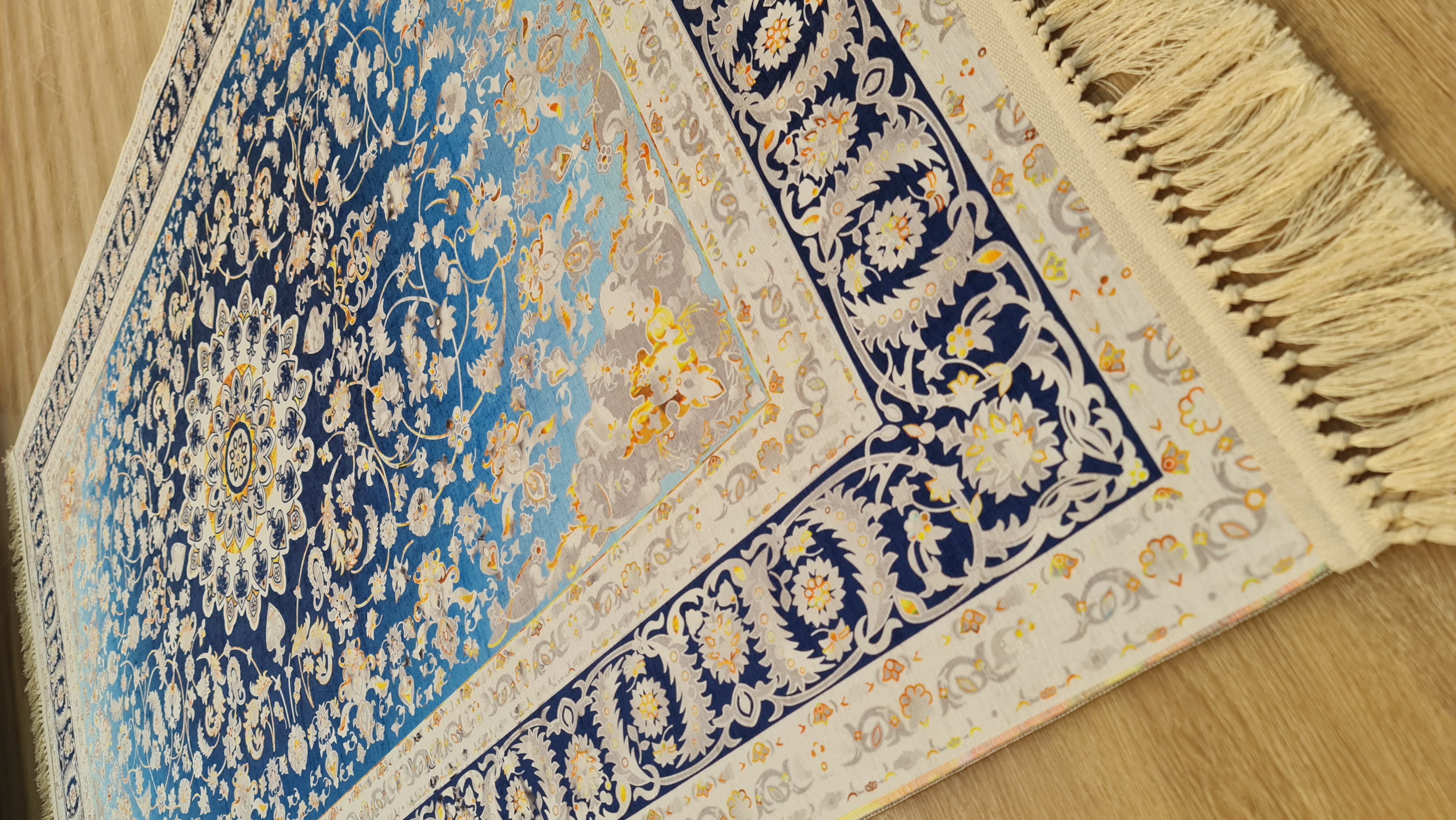 فرشینه لوکس آبی| ترکیب هنری شاهعباسی و طراحی ظریف گلدار با زیره ضد لغزش و رویه مخمل شانل و ضمانت شرکتی۳٬۶۰۰٬۰۰۰ 8%