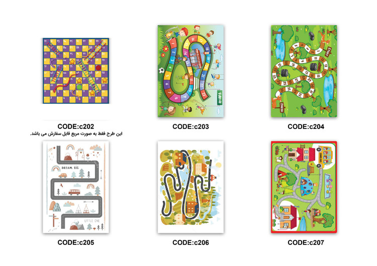 فرشینه های آموزشی مناسب کودکان مدارس مهدکودک خانه بازی و ... (مارپله و طرح های بازی ) کد 202 تا 207
