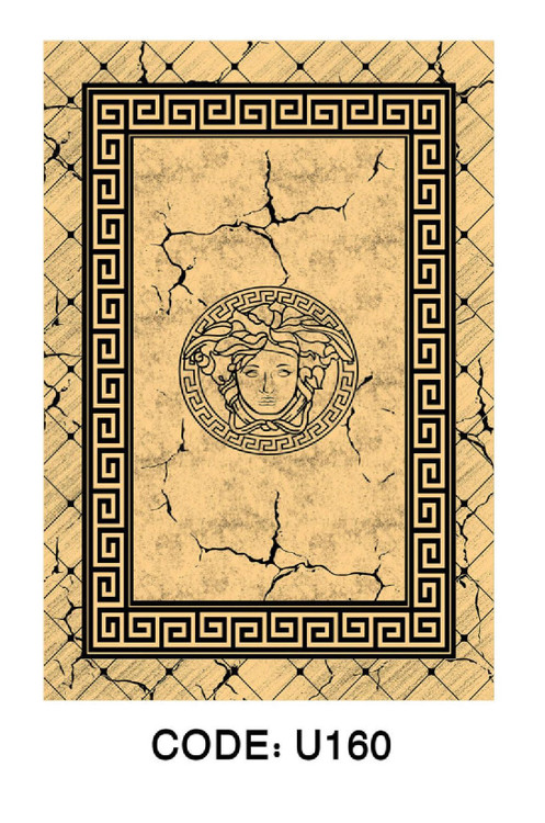 فرشینه طرح ورساچه طلایی کد U160 | فرش مدرن کرم طلایی با طرح یونانی لوکس و رویه شانل ترک و زسره ضد لغزش با ضمانت