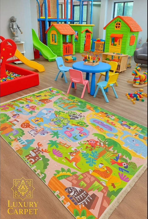فرشینه کودک طرح جنگل و حیوانات – مناسب مهدکودک و اتاق بازی با رویه ضد حساسیت و ضمانت شرکتی رنگ و شستشو