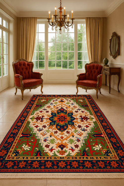 ترکیب رنگهای اصیل و زنده آن، فضایی گرم و باوقار ایجاد کرده و جلوهای فاخر به دکوراسیون میبخشد.