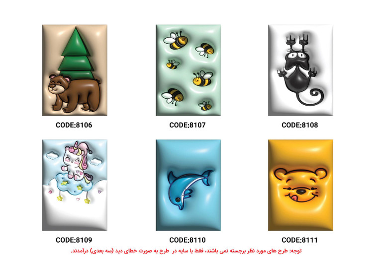 نکته: طرح های مورد نظر برجسته نمیباشد فقط با سایه در طرح بصورت خطای دید (سه بعدی) بنظر می آید.