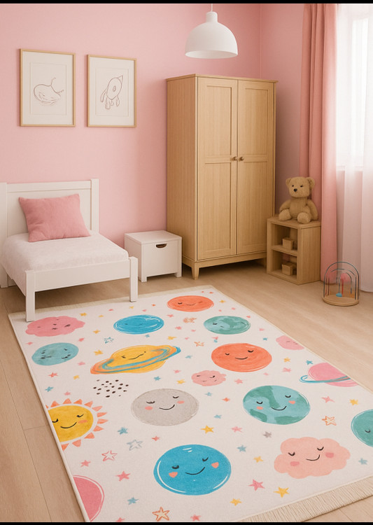 فرشینه کهکشان با رنگ بندی جذاب و شاد مناسب اتاق کودک