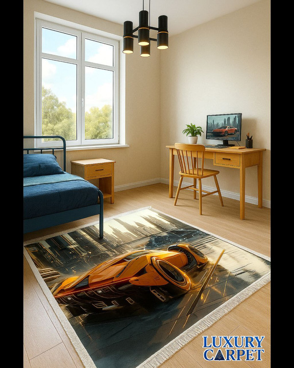 فرشینه طرح ماشین اسپرت انتخابی فوقالعاده برای اتاق کودک و نوجوان است.